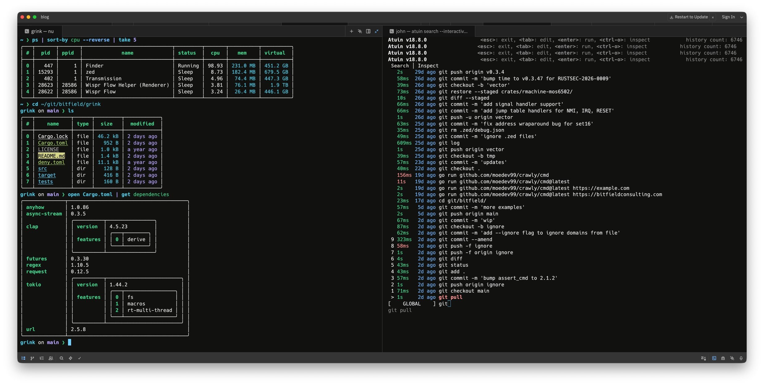 Nu is the shell that Rust would be. Calling it a “shell” buries the lede: it’s a thinking language based on pipelines, structured data, and interactive queries.